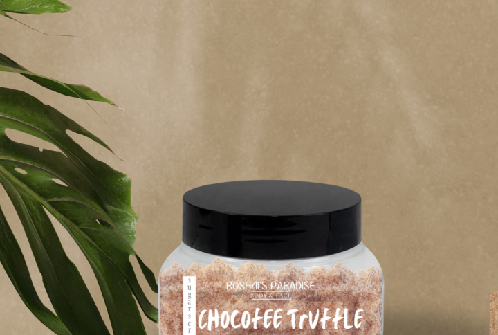 •Chocoffee Truffle Scrub: Cocoa can help calm irritated or inflamed skin. Whether you’re dealing with redness, acne, a blend of cocoa and coffee is your go to for the best result. Coffee basically is a type of mechanical exfoliation — that means they physically slough away dead skin cells from your skin’s surface through scrubbing and reveal brighter looking skin.